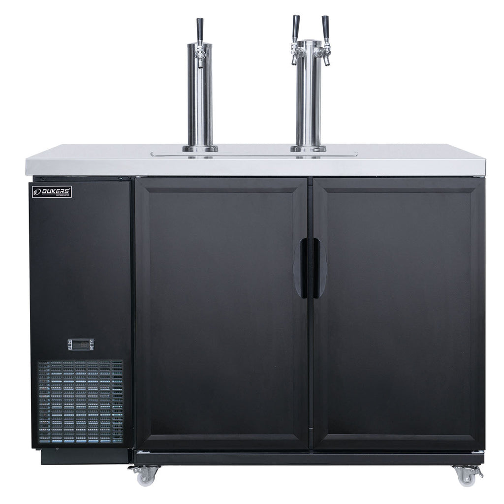 - Equipped with electronic controls, users can adjust the temperature of the draft beer cooler from 33 to 38 degrees Fahrenheit.