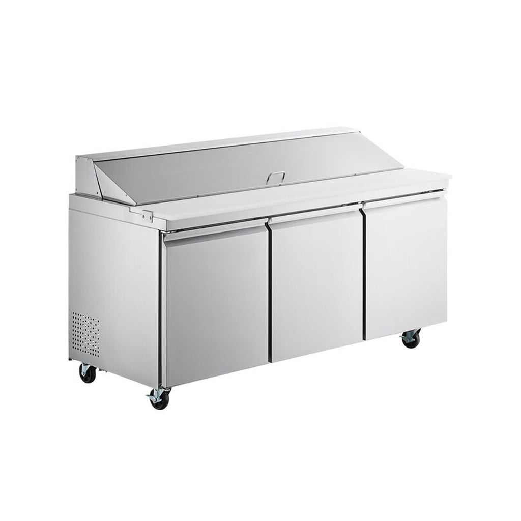 Chef AAA - SS-PT-70-HC, 70" Commercial Sandwich Prep Table 3 Door Stainless Steel Refrigerator 15.5 cu.ft.