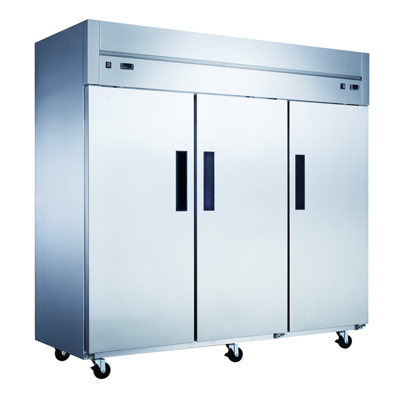 The Chef AAA T83ARF reach-in refrigerator and freezer is designed to suit the needs of any business that needs optimal performance without sacrificing design. Its’ three doors are accented with high-quality brushed stainless steel for both the interior and exterior to fit a variety of decors. Recessed door handles allow for clean styling and better ergonomics. The heavy-duty compressor is top-mounted for excellent efficiency and better cooling. Digital controls fine-tune the desired interior temperature. Self-closing doors free up your hands for added convenience and ease of use. Auto-defrosting provides lower energy costs and colder temperatures. The included 12 shelves can be adjusted or removed for flexibility and maintenance. Easily move and position with six swivel casters.