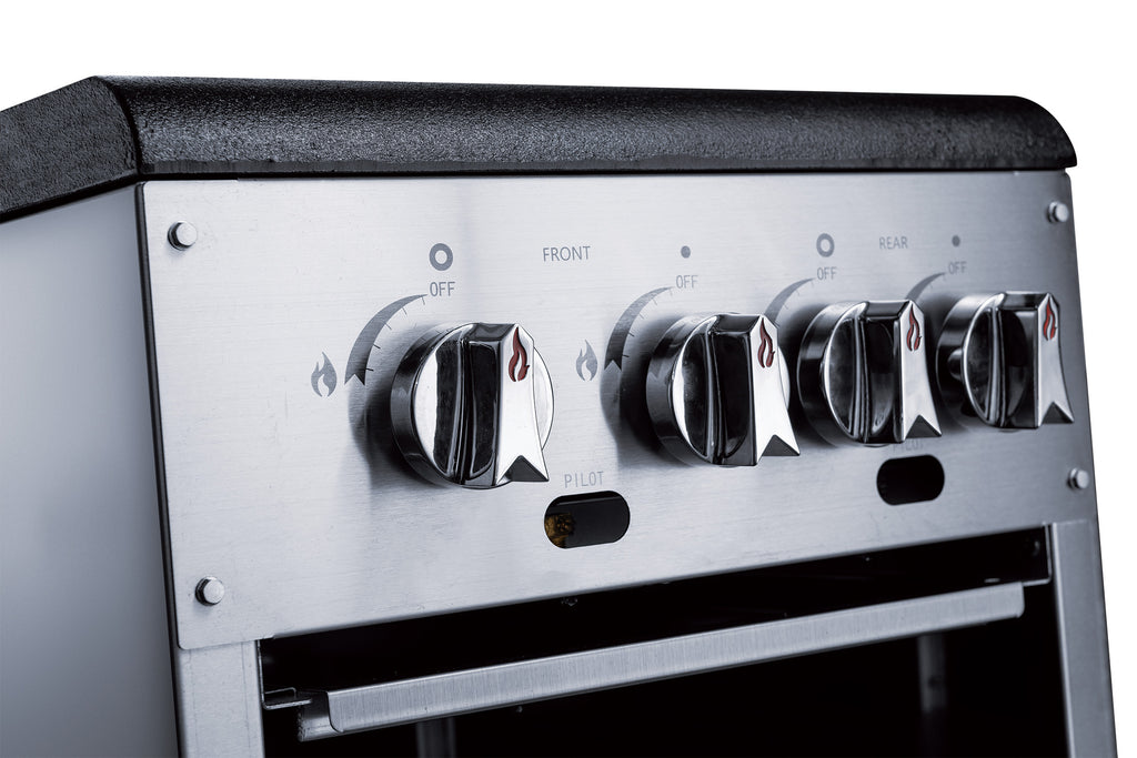 - Heavy duty cast iron three-ring burner, rated at a total of 80.000 BTU/H.