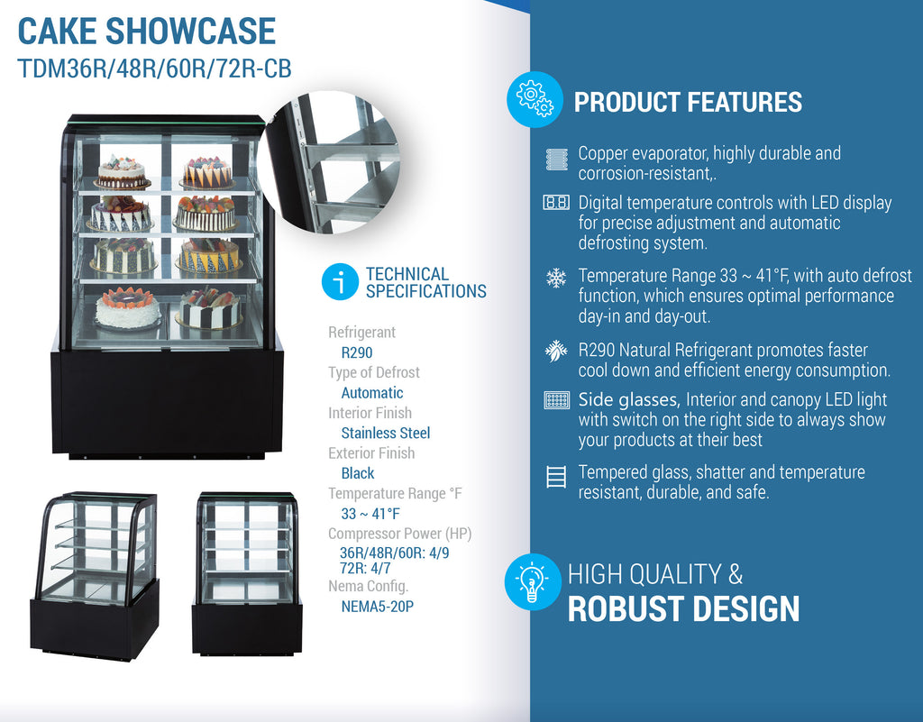 Chef AAA - TDM36R-CB, 36" Curved Glass Bakery Case