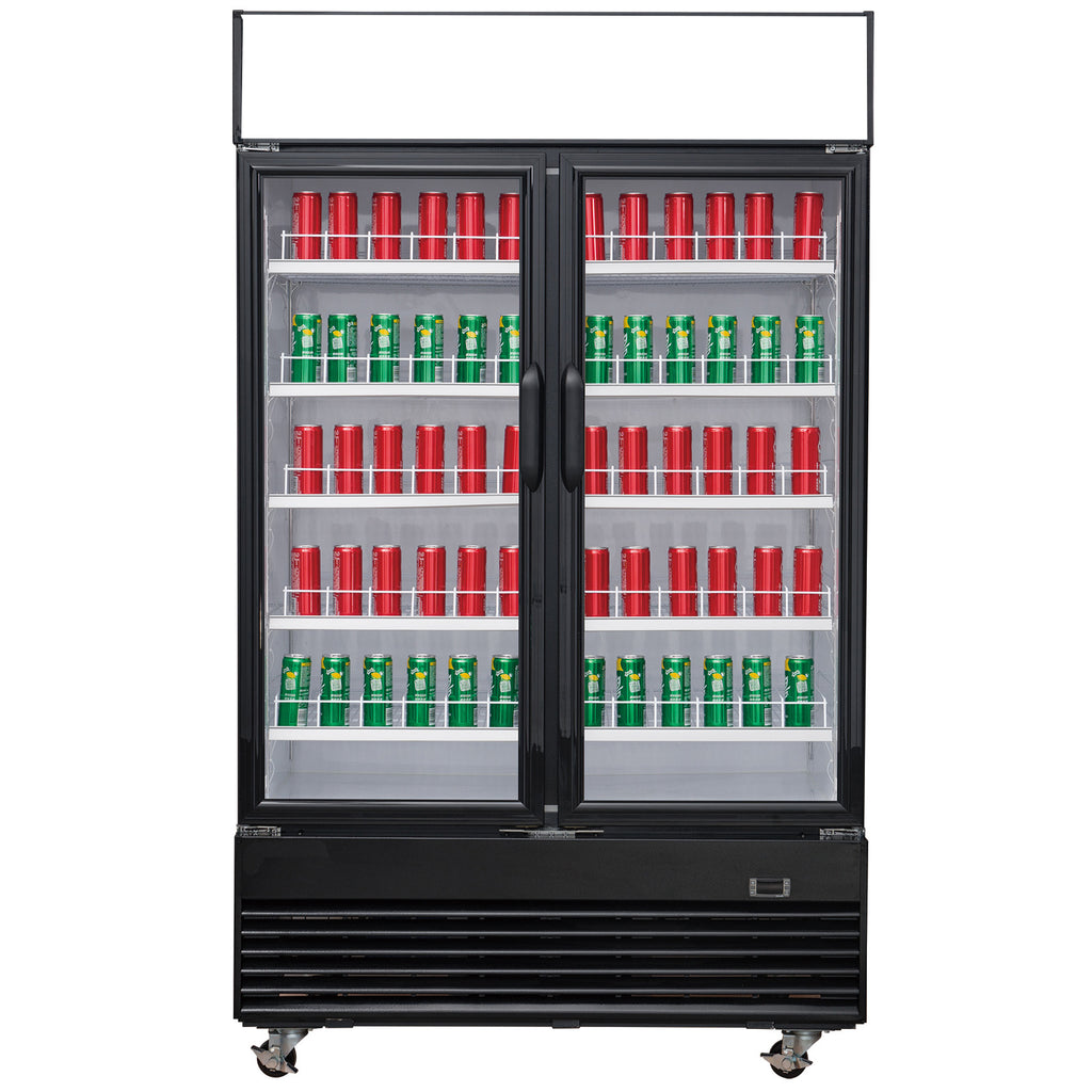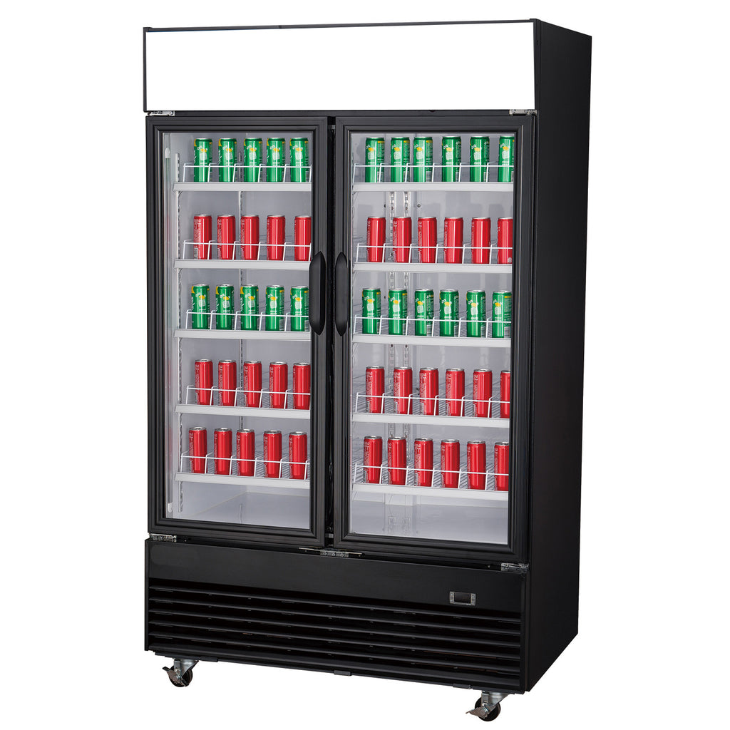 Designed perfectly to showcase and display any kind of merchandise, the Chef AAA - TSM33R double glass door merchandiser refrigerator chills products while offering a stylish enclosure for your business needs. Using super bright LED lighting and a backlit marquee, this unit keeps your merchandise brightly light and easily visible from any location. With a range of 33°F to 41°F, it chills and safely stores all type of food. Digital temperature controls and LED display lets you precisely pick the desired temperature. Designed with a bottom mounted compressor for efficiency. Includes 8 adjustable and removable wire shelves to suit merchandise of any size.