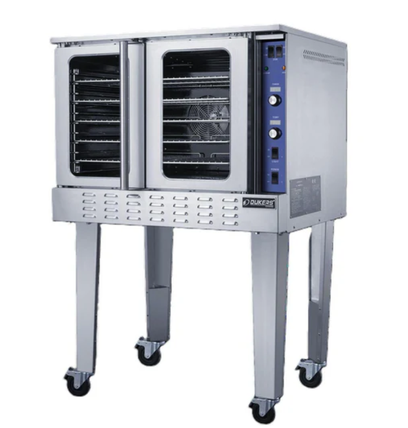 The Dukers DCCOG1 Single Convection Oven offers reliable and efficient baking capabilities for commercial kitchens. With three burners, each providing 18,000 BTU/H, it ensures consistent and thorough cooking results. It supports both natural gas and propane, catering to various kitchen setups. The oven features an elegant stainless steel exterior for easy cleaning and durability, complemented by double-pane glass doors for insulation and visibility. Equipped with two-speed fans and adjustable cool-down mode, it enhances airflow and temperature control. The oven includes ten adjustable shelves and five nickel-plated chrome shelves, offering versatility in baking needs. Its electronic spark ignition system with automatic pilot safety shut off ensures reliable operation, while the electronic temperature control and manual timer guarantee precision in baking. With an adjustable temperature range between 150°F to 500°F and convenient flip panel design for maintenance, this convection oven is a dependable choice for professional kitchens seeking quality and performance.