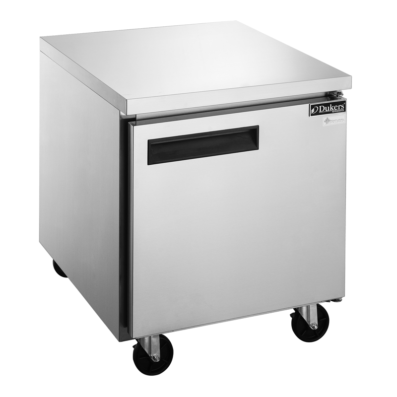 The Dukers DUC29R undercounter refrigerator has a spacious capacity and all over brushed stainless steel construction. With a temperature range of 33 to 41°F, it chills and safely stores all type of food. Digital temperature controls and LED display lets you precisely pick the desired temperature. Designed with a bottom mounted 1/7 HP compressor for efficiency. Includes 1 adjustable and removable wire shelf.