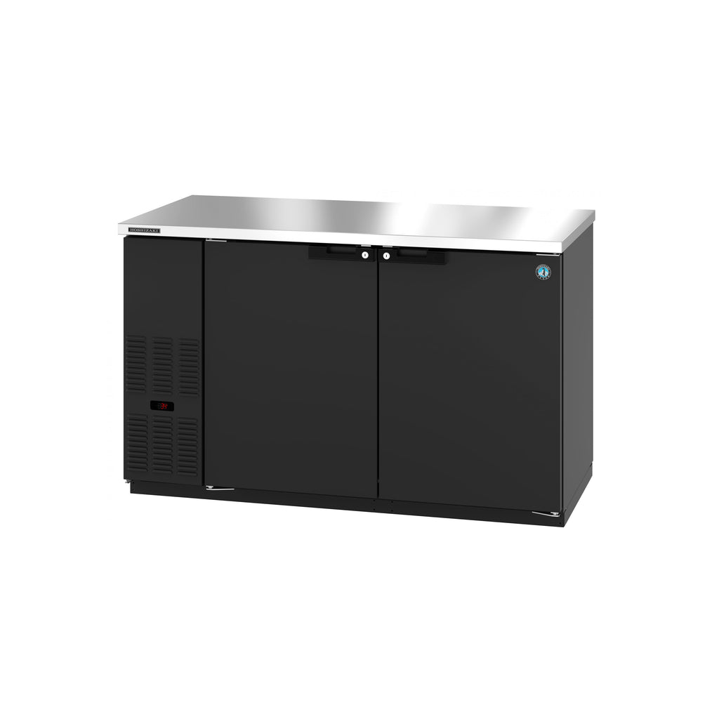 Keep your bar fully stocked on the busiest nights with the help of this Hoshizaki BB59 59 1/2" black solid door back bar refrigerator. This unit can hold up to (852) 12 oz. cans or (3) 1/2 kegs so you can be sure that you have plenty of beverages on hand for your thirsty customers. It also comes with 2 adjustable shelves per section (4 total) so you can keep your stock organized for efficient service in a busy bar environment. To help you find product quickly, this back bar has bright, cool LED interior lighting.