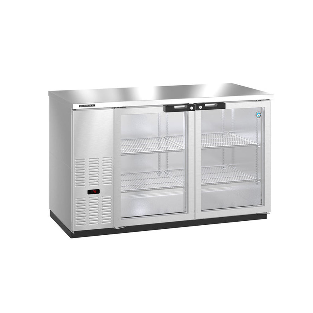 Keep your bar fully stocked on the busiest nights with the help of this Hoshizaki BB59-G-S 59 1/2" stainless steel glass door back bar refrigerator. This unit can hold up to (852) 12 oz. cans or (3) 1/2 kegs so you can be sure that you have plenty of beverages on hand for your thirsty customers. It also comes with 2 adjustable shelves per section (4 total) so you can keep your stock organized for efficient service in a busy bar environment. To help you find product quickly, this back bar has bright, cool LED interior lighting.
