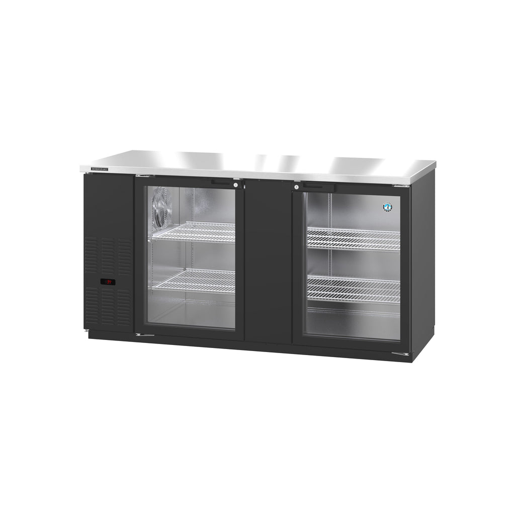 Keep your bar fully stocked on the busiest nights with the help of this Hoshizaki BB69-G 69 1/2" black glass door back bar refrigerator. This unit can hold up to (1014) 12 oz. cans or (3) 1/2 kegs so you can be sure that you have plenty of beverages on hand for your thirsty customers. It also comes with 2 adjustable shelves per section (4 total) so you can keep your stock organized for efficient service in a busy bar environment. To help you find product quickly, this back bar has bright, cool LED interior lighting.