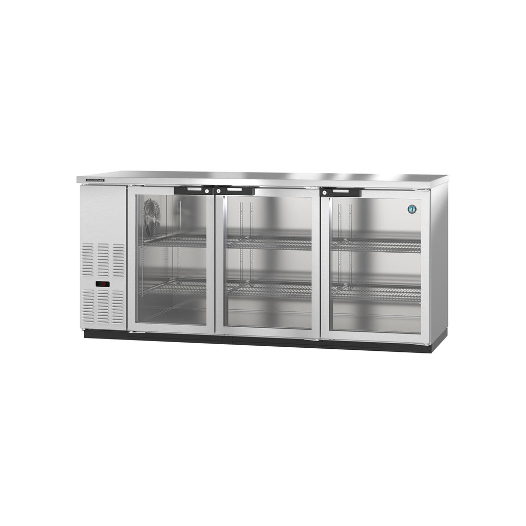 Keep your bar fully stocked on the busiest nights with the help of this Hoshizaki BB80-G-S 80" stainless steel glass door back bar refrigerator. This unit can hold up to (1092) 12 oz. cans or (4) 1/2 kegs so you can be sure that you have plenty of beverages on hand for your thirsty customers. It also comes with 2 adjustable shelves per section (6 total) so you can keep your stock organized for efficient service in a busy bar environment. To help you find product quickly, this back bar has bright, cool LED interior lighting.
