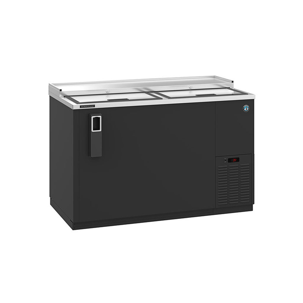 Keep bottled beverages cold and ready to serve with this Hoshizaki CC50 50 1/2" black horizontal bottle cooler! Great for craft sodas, beers, ciders, and more, this bottle cooler can hold up to (704) 12 oz. bottles or (286) 20 oz. bottles at one time. It comes equipped with 3 bin dividers so you can keep your stock organized, and it even has a bottle opener and cap catcher to make bottle service fast and efficient.