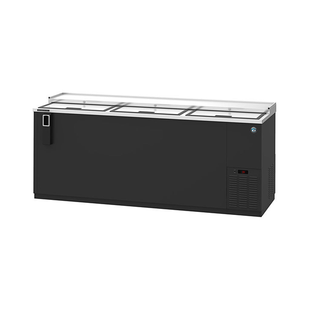 Keep bottled beverages cold and ready to serve with this Hoshizaki CC80 80" black horizontal bottle cooler! Great for craft sodas, beers, ciders, and more, this bottle cooler can hold up to (1150) 12 oz. bottles or (547) 20 oz. bottles at one time. It comes equipped with 6 bin dividers so you can keep your stock organized, and it even has a bottle opener and cap catcher to make bottle service fast and efficient.