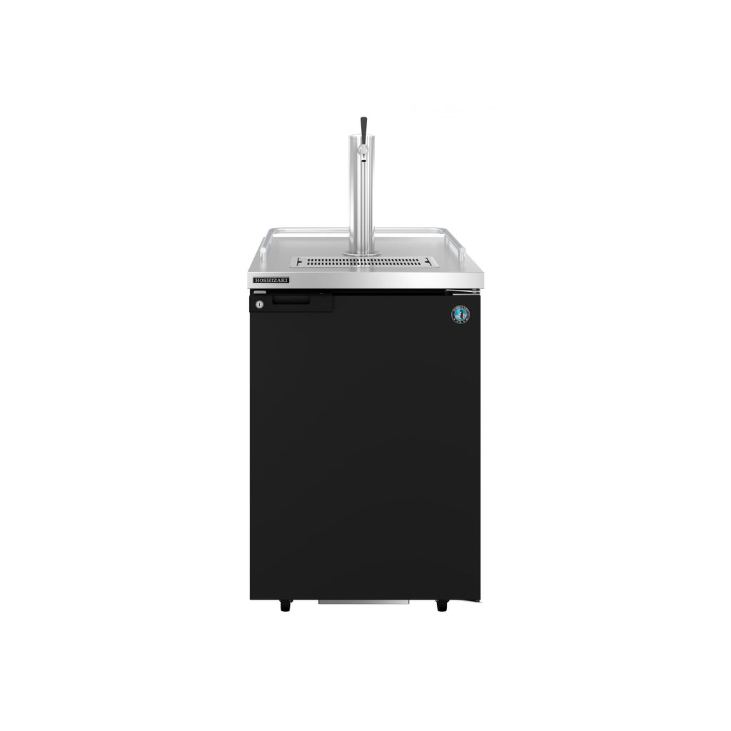 Equip your bar or catering venue for draft beer service with this Hoshizaki DD24 black single tap kegerator beer dispenser! This unit has a (1) 1/2 keg capacity, which makes it perfect for catering venues, smaller bars where you will not be serving high volumes of beer, or for testing out new craft brews in your establishment.