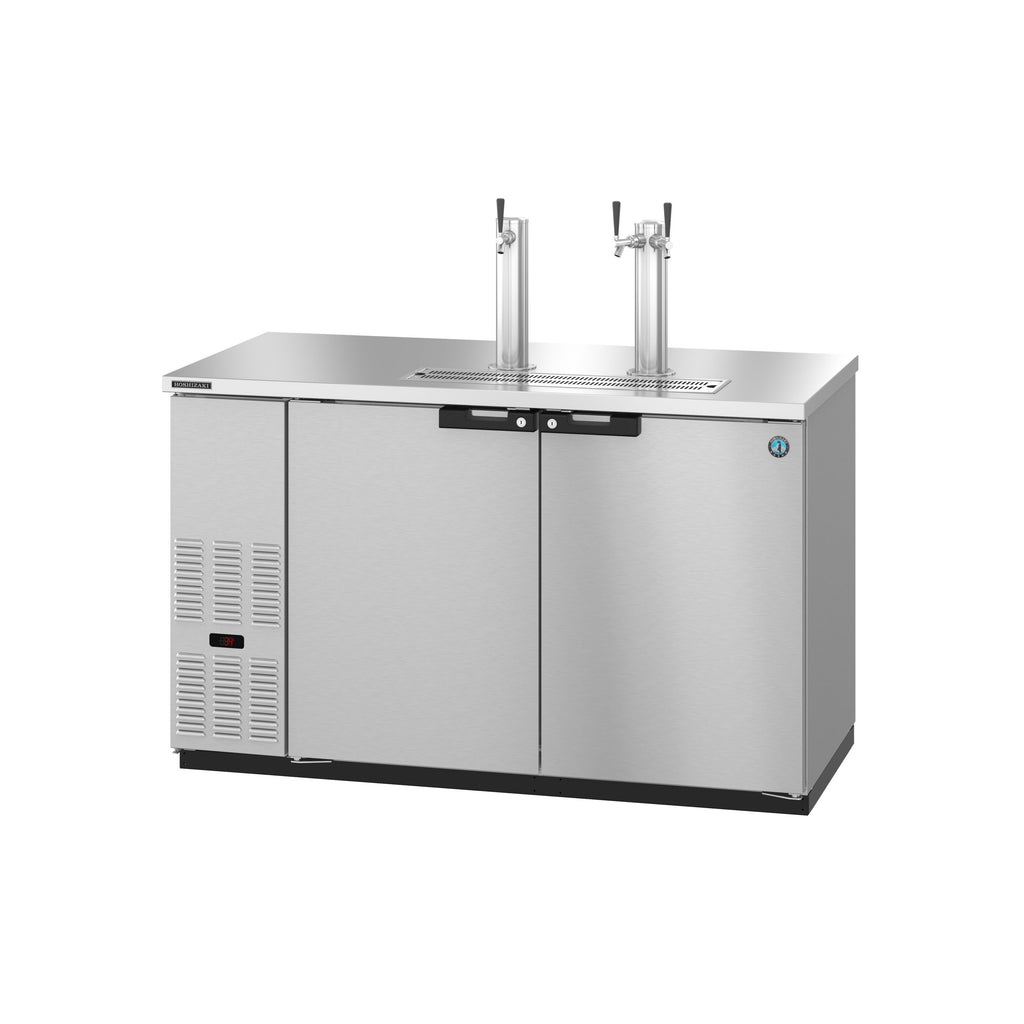 Equip your bar or catering venue for draft beer service with this Hoshizaki DD59-S stainless steel single/double tap kegerator beer dispenser! This unit has a (2) 1/2 keg capacity, which makes it perfect for outfitting catering venues, bars, restaurants, or for testing out new craft brews in your establishment.