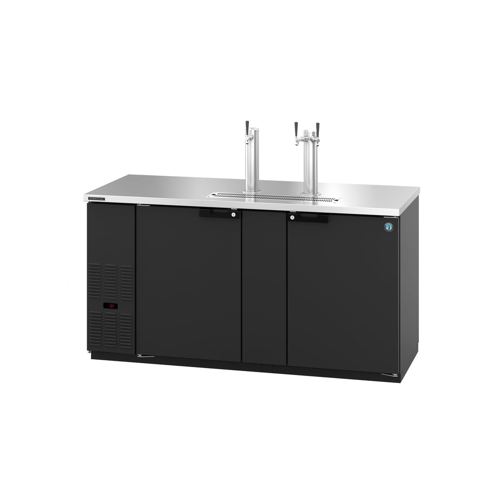 Equip your bar or catering venue for draft beer service with this Hoshizaki DD69 black single/double tap kegerator beer dispenser! This unit has a (3) 1/2 keg capacity, which makes it perfect for outfitting event venues, bars, or restaurants.
