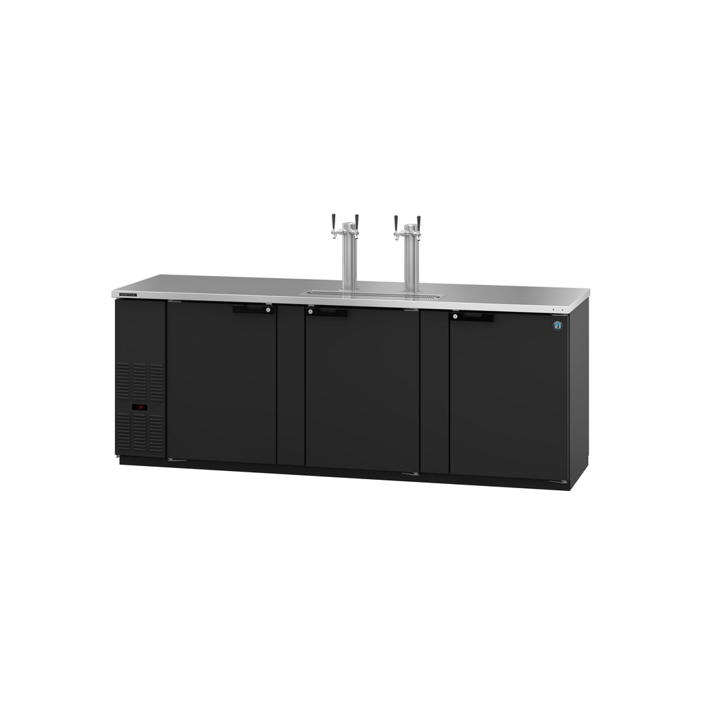 Equip your bar or catering venue for draft beer service with this Hoshizaki DD95 black double tap kegerator beer dispenser! This unit has a (5) 1/2 keg capacity, which makes it perfect for outfitting event venues, bars, or restaurants.