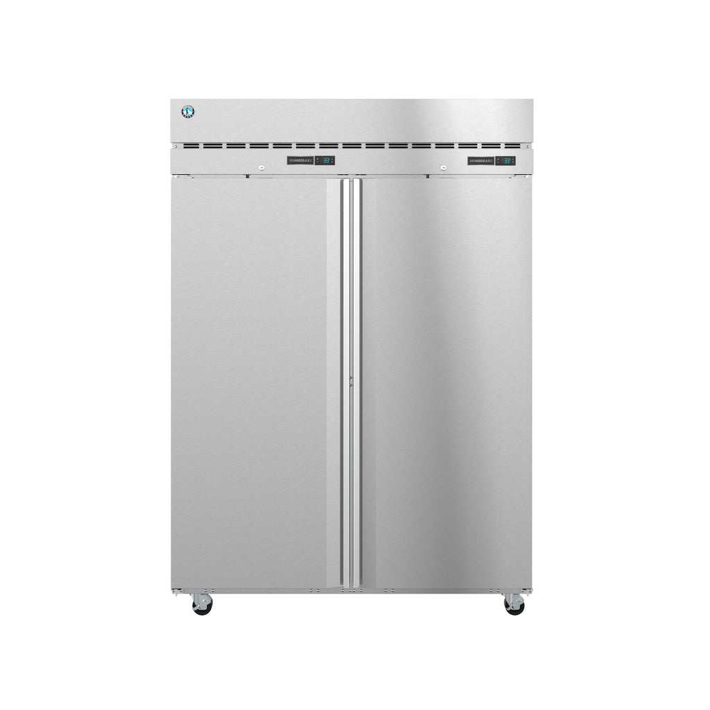 Store refrigerated and frozen foods in the same footprint with this Hoshizaki DT2A-FS solid door dual temperature reach-in refrigerator and freezer combination! With a refrigerated section on the left and a freezer section on the right, you can make the most of your small space by combining refrigerated and frozen storage in one unit. The refrigerated section maintains cold temperatures above 33 degrees Fahrenheit, while the frozen section has a temperature range of -10 to 10 degrees Fahrenheit. As a whole, the unit is engineered to maintain NSF-7 temperatures in 100 degree Fahrenheit ambient temperatures.
