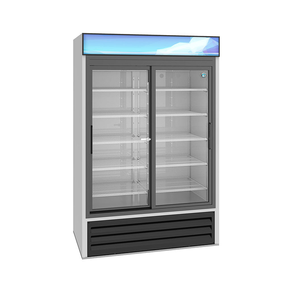 Prompt impulse purchases of your bottled beverages and packaged snacks with this Hoshizaki RM-45-SD-HC refrigerated sliding glass door merchandiser! This unit allows you to show off your pre-packaged offerings to customers, prompting impulse buys and add-ons to other orders. Since this model can hold up to (560) 20 oz. bottles or (1260) 12 oz. bottles, you can always display plenty of inventory for thirsty customers to choose from.