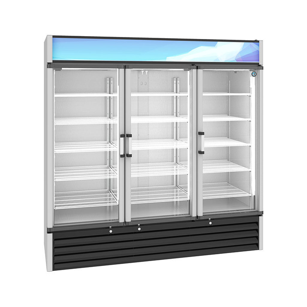 Prompt impulse purchases of your bottled beverages and packaged snacks with this Hoshizaki RM-65-HC refrigerated glass door merchandiser! This unit allows you to show off your pre-packaged offerings to customers, prompting impulse buys and add-ons to other orders. Since this model can hold up to (830) 20 oz. bottles or (1926) 12 oz. bottles, you can always display plenty of inventory for thirsty customers to choose from.