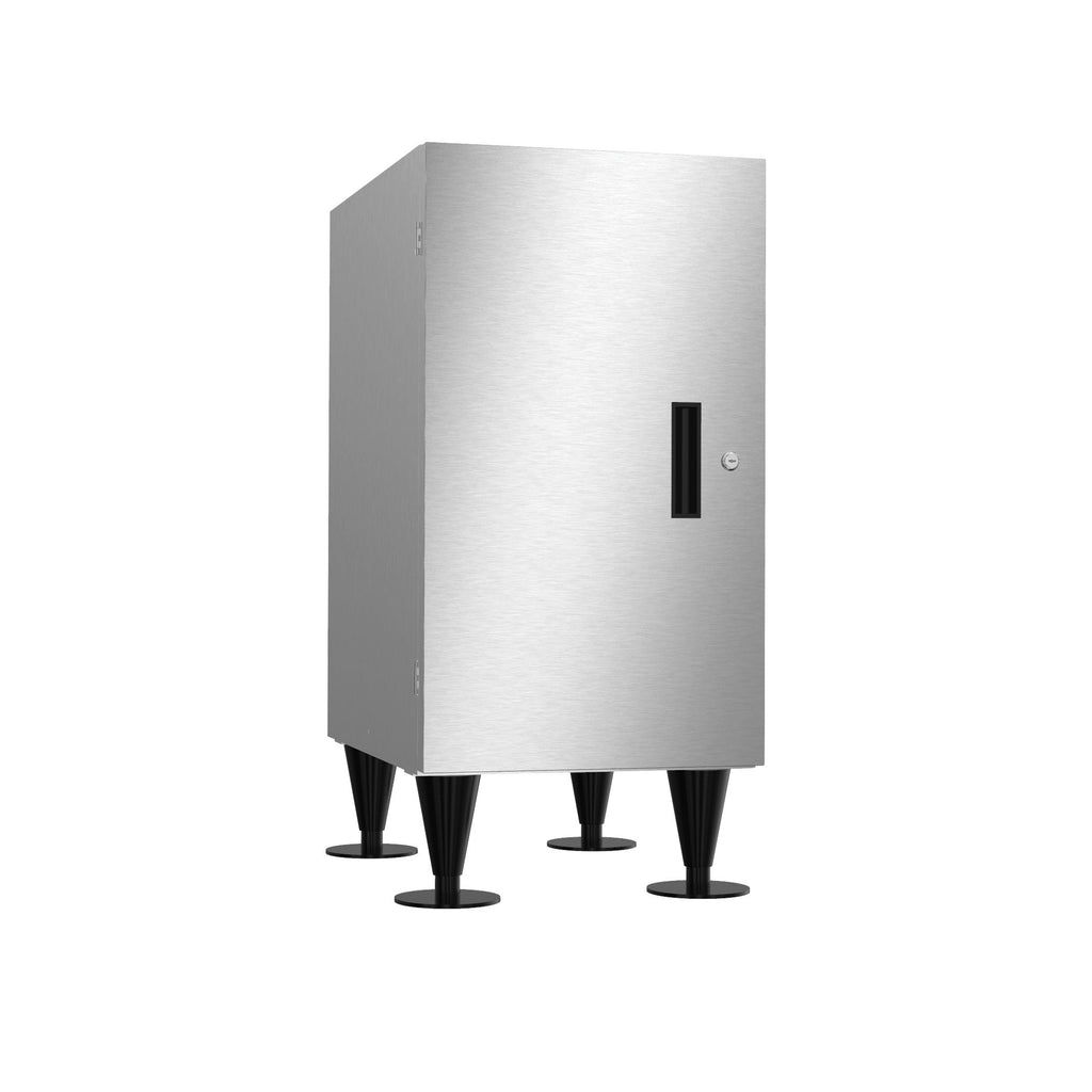 Designed for use with select DCM-271 series units, this Hoshizaki SD-271 ice machine stand will elevate and add stability to your existing unit! This heavy-duty stand will turn your ice or water dispenser into a floor model. Boasting a corrosion resistant stainless steel exterior, this stand is easy to clean. For added convenience, this stand features (4) adjustable 6" painted flange legs. One locking, reversible door comes standard. An ideal size for any large or small kitchen space, this stand can also be used for front of house operation for self-serve applications.