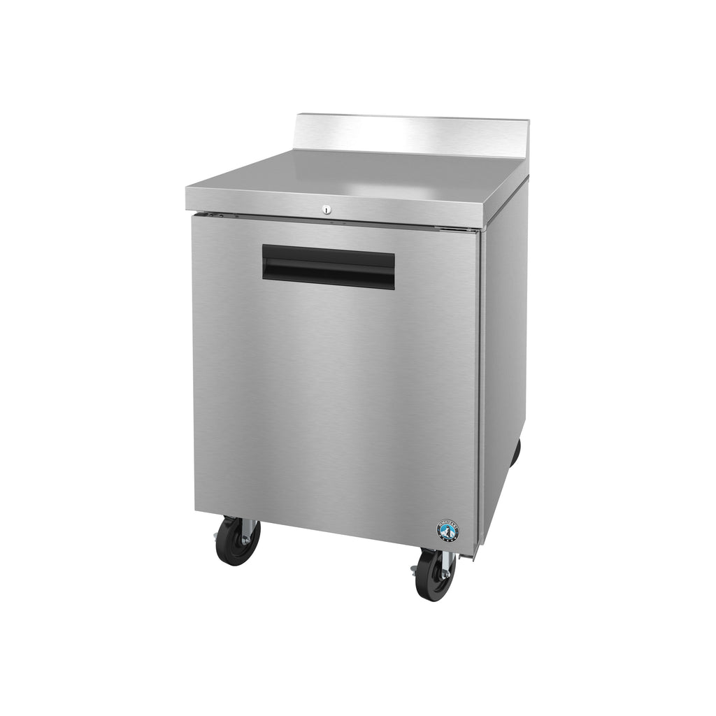 Increase the frozen storage capacity in your kitchen with the Hoshizaki Steelheart B Series WF27B-01 27" worktop freezer with a door lock! With its 2-in-1 design, it not only provides a durable worktop to prep food, but also allows for convenient access to frozen food items. Plus, its backsplash catches any spills from food debris to keep the area clean. Made with a durable stainless steel exterior and interior, this unit is built to withstand tough, busy kitchen environments with ease.