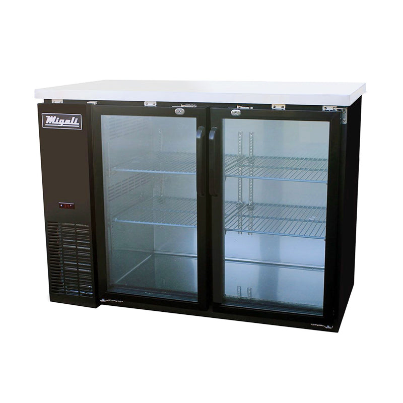 The Migali® C-BB48G-HC glass door back bar refrigerator is a great addition to any bar, restaurant or man cave. The all black exterior, stainless steel top and stainless steel interior provides a minimalist appearance that is both attractive and durable. The interior includes LED lightings for a bright attractive display. This series is engineered with a robust forced air refrigeration system for cold, uniform temperatures throughout the interior, keeping your beverages at an average temperature of 36°F. The C-BB48G-HC incorporates a digital controller and temperature read-out for improved temperature consistency, increased energy efficiencies and top-of-the-line performance. Lastly, this unit is built with a state-of-the-art, hydrocarbon refrigeration system which reduces energy consumption up to 40% (when compared to traditional freons 134a and 404a). This in turn saves you money on your monthly electric bill, greatly reduces your overall cost of ownership and finally